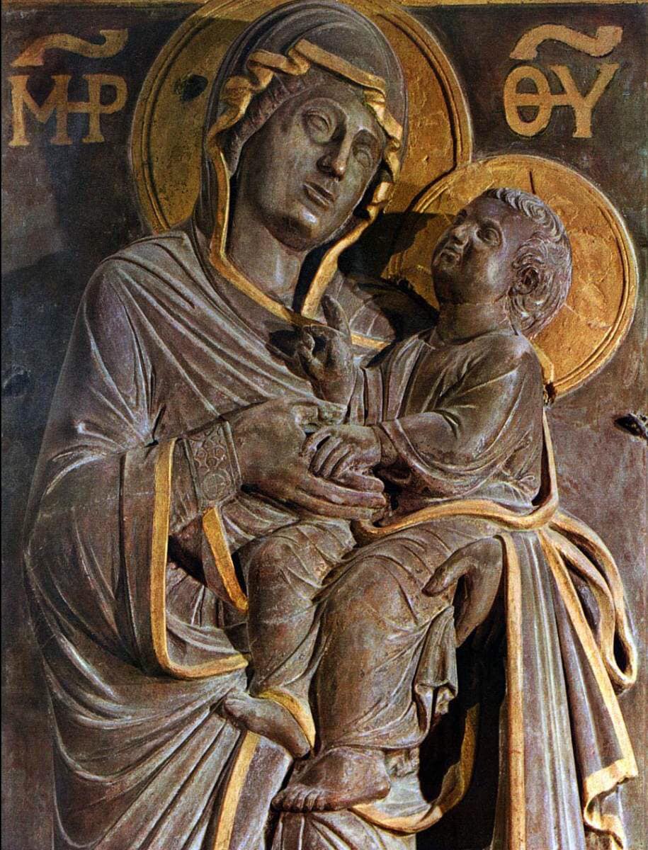 اما اشهرها، فالايقونة المعروفة بينبوع الحياة في القسطنطينية، والمحفورة على الرخام، تقف فيها العذراء وهي تفتح يديها باتجاه السماء. وقد نقلت بعد عام ١٢٠٤ الى البندقية واصبحت تعرف هناك بسيدة النعمة . Madonna della Grazia . اضافة الى ايقونة بيزنطية اخرى معروفة ب Madonna della schioppo