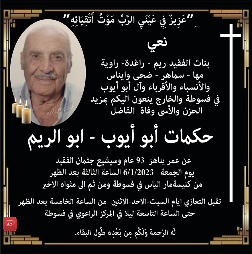 فسوطة: وفاة الفاضل حكمات ابو ايوب - ابو الريم