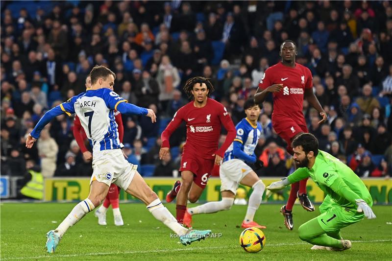 واصل ليفربول نتائجه المخيبة لآمال جماهيره بخسارته خارج أرضه على يد برايتون بثلاثية دون رد، اليوم السبت، ضمن منافسات الجولة 20 من الدوري الإنجليزي الممتاز. ثلاثية برايتون جاءت بتوقيع سولي مارش "ثنائية" في الدقيقتين 47 و53، قبل أن يسجل داني ويلبيك هدفا ثالثا في الدقيقة 81. الانتصار منح برايتون فرصة تجاوز ليفربول في جدول الترتيب نحو المركز السابع بوصوله للنقطة 30، فيما تجمد رصيد الريدز عند 28 نقطة، متراجعا للمرتبة الثامنة. شهدت الدقائق الأولى سيطرة واضحة من برايتون، الذي حاول الوصول لمرمى أليسون بيكر بشتى الطرق، لكنه لم ينجح في تشكيل خطورة حقيقية. ولعب مدافعو الفريقين دورا بطوليا في الحد من خطورة المهاجمين على كلا المرميين حتى كاد أطلق النجم المصري محمد صلاح كرة علت العارضة. وسنحت فرصة هدف محقق لبرايتون بعد تلقي مارش تمريرة بينية، ليخترق منطقة الجزاء قبل مراوغة أليسون، الذي التحم معه وتسبب في سقوط سولي أرضا، ليحتسب الحكم ركلة جزاء. وتلقى الحكم إشعارا بعد ذلك من غرفة "الفار" يفيد بوجود مارش في التسلل لحظة تمرير الكرة إليه، مما دفعه لإلغاء قراره واحتساب تسلل، لينتهي الشوط الأول بعدها بالتعادل السلبي. بداية الشوط الثاني جاءت ساخنة بعدما ارتكب ماتيب خطأ فادحا بتمريرة لم تصل لأحد زملائه، بل استخلصها أحد لاعبي برايتون وتحولت إلى هجمة مضادة، أنهاها ميتوما بتمريرة عرضية نحو مارش، الذي تكفل بوضعها في الشباك بسهولة. لم يكد ليفربول يستفيق من الهدف الأول حتى عاد مارش لتعميق جراحه بتسديدة يسارية قوية من قلب منطقة الجزاء، استقرت في أقصى الزاوية اليسرى لمرمى أليسون. ووصلت كرة إلى ميتوما على الجبهة اليسرى، لينطلق بها ويقترب من منطقة جزاء الريدز قبل إطلاق تسديدة استقرت بسهولة بين أحضان الحارس البرازيلي أليسون. وأرسل أليكسندر أرنولد عرضية متقنة نحو منطقة جزاء برايتون، لتصل إلى جاكبو، الذي كاد يضعها في الشباك لولا براعة الحارس روبرت سانشيز، الذي أبعد الكرة ببسالة. وقبل نهاية الوقت الأصلي بـ9 دقائق، تلاعب البديل ويلبيك بجو جوميز داخل منطقة الجزاء قبل أن يضع كرة على الطائر داخل الشباك، معززا تقدم أصحاب الأرض. وكان ويلبيك قريبا من إضافة هدف رابع لفريقه بعدما تسلم تمريرة داخل منطقة الجزاء، قبل أن يستدير بجسده ويسدد أرضية زاحفة بيسراه، لكن أليسون كان لها بالمرصاد.