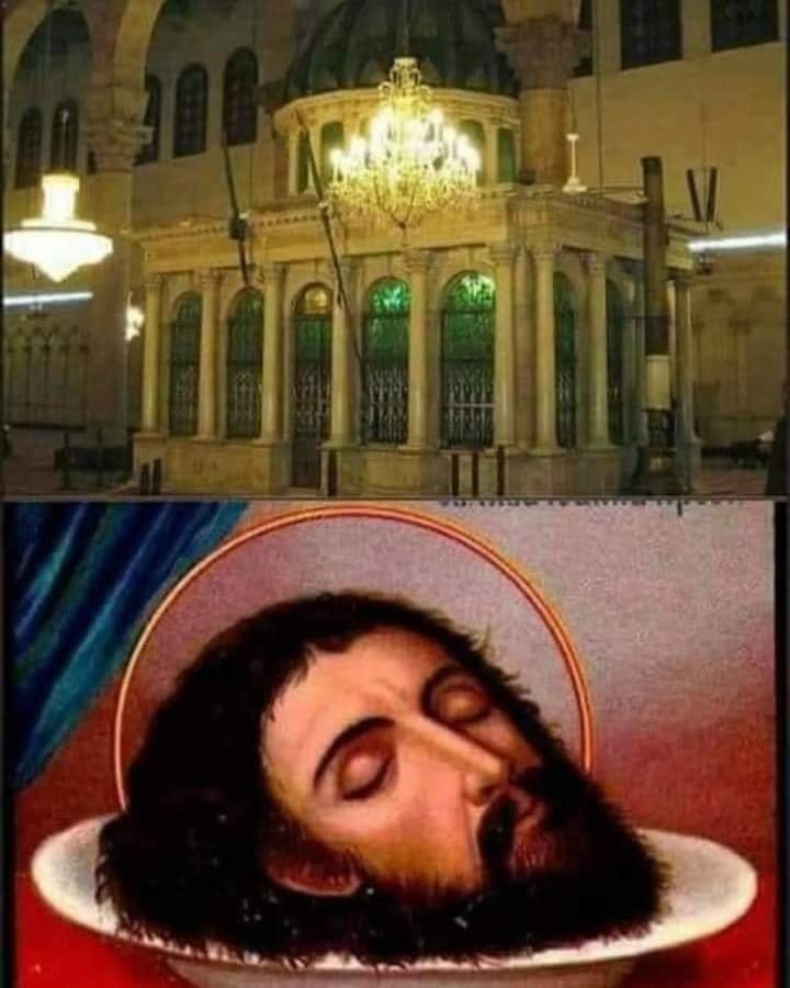 داخل الجامع الأموي الكبير في دمشق وتحت هذه القبّة يُحفظ جزءٌ من رفات القديس يوحنا المعمدان، وهو على الأرجح من رأس القديس، وذلك منذ أن كان كنيسة كبيرة شيّدها الروم البيزنطيين في القرن الرابع الميلادي على اسم هذا القديس، وقبل أن يتمّ تحويله الى "الجامع الأموي" في القرن الثامن الميلادي، بعد احتلال العرب لبلاد الشام!