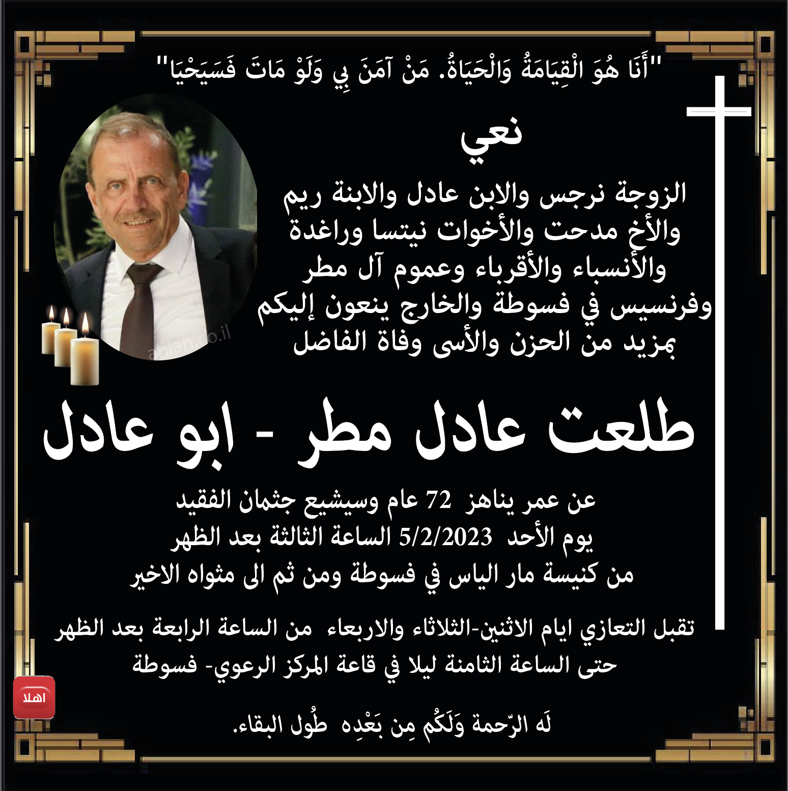 فسوطة: وفاة الفاضل طلعت مطر ابو عادل