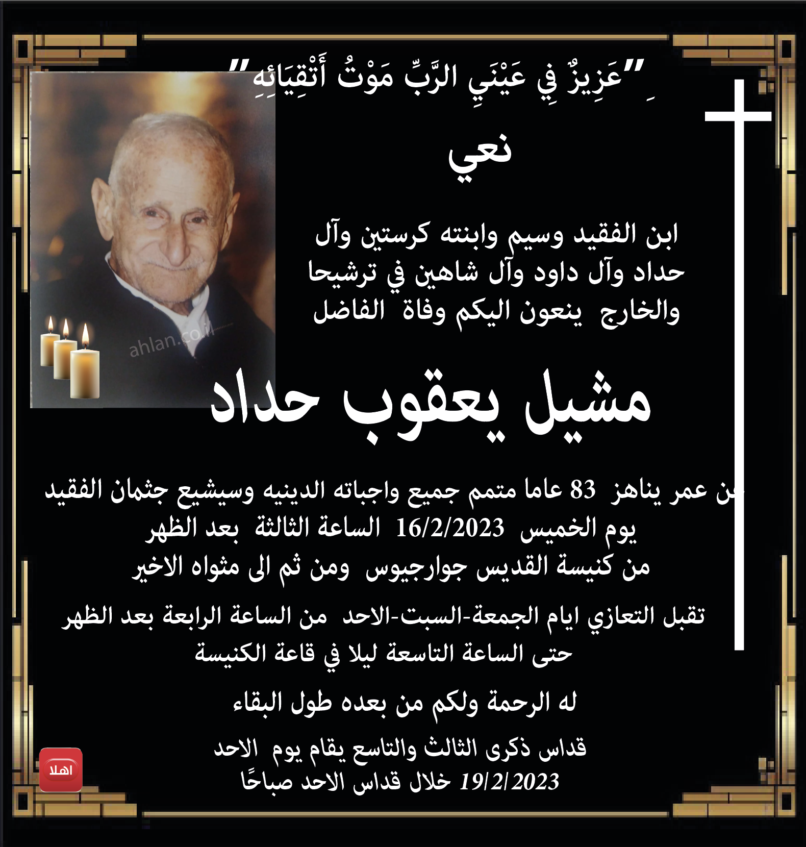 ترشيحا: وفاة الفاضل مشيل يعقوب حداد