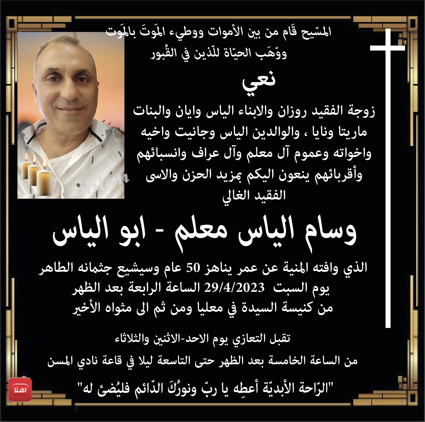 معليا - وفاة الشاب وسام الياس معلم - ابو الياس