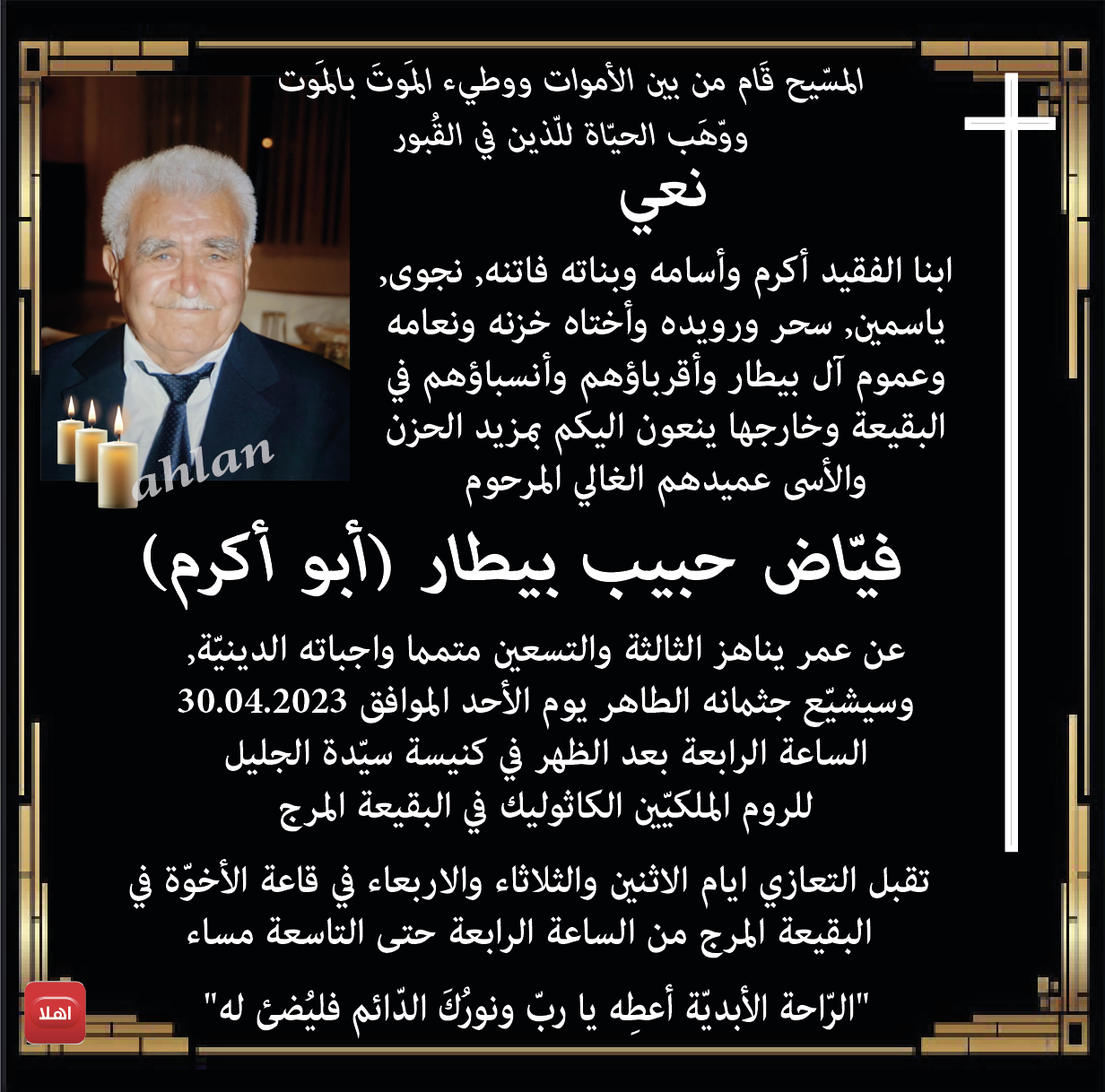 البقيعه-المرج: وفاة الفاضل فيّاض حبيب بيطار (أبو أكرم)