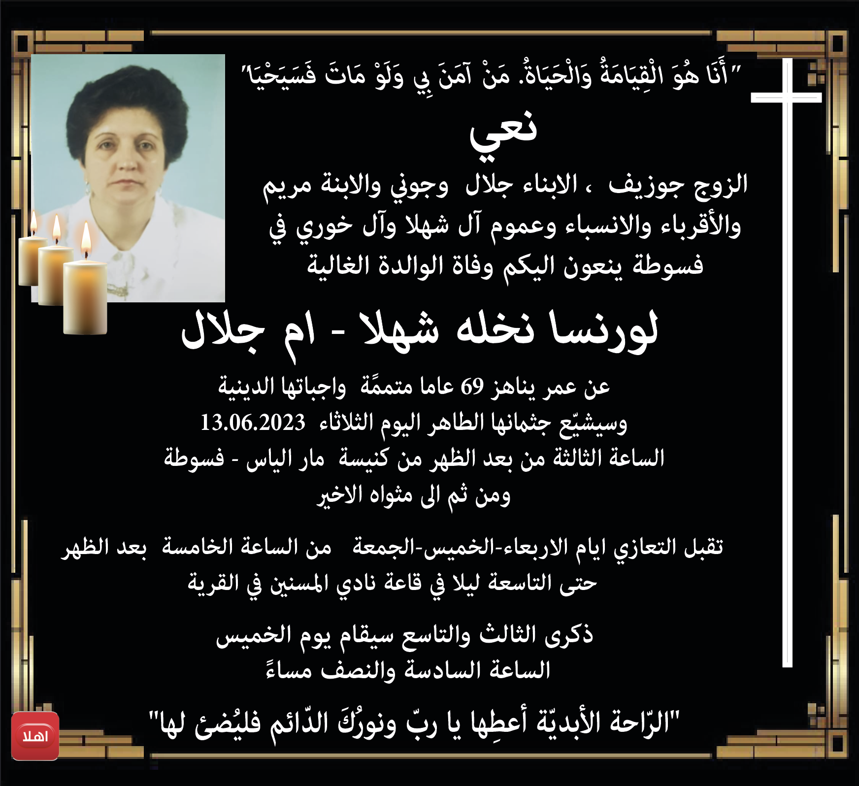 فسوطة: وفاة الفاضلة لورنسا شهلا - ام جلال