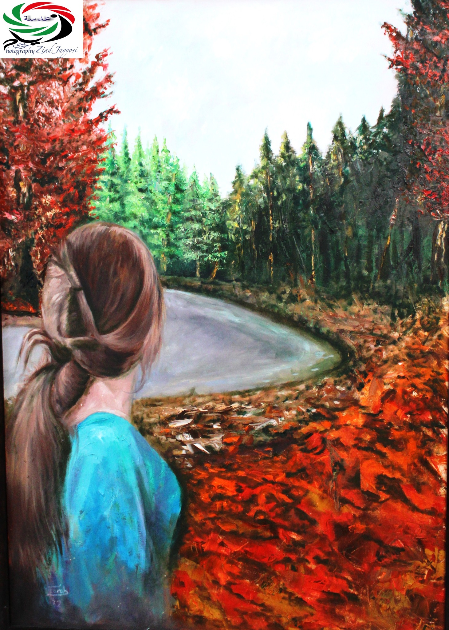 اهلا القليل من المعارض التشكيلية التي حضرتها في حياتي كانت تروي حكاية، وهذه المعارض كانت من أجمل المعارض التي شاهدتها عبر ما يزيد عن نصف قرن من الاعوام التي مرت من عمري، وحين وجهت لي الفنانة طرب أبو زهرة الدعوة لحضور معرضها الشخصي "حكاية صمت" والذي كان في بيت عرار في مدينة اربد يوم 15 أيار للعام الحالي 2023م وبتنظيم من ملتقى ألق الثقافي ورئيسته السيدة حمدة الهربيد وبالتعاون مع مديرية ثقافة اربد وحضور رئيس قسم الهيئات الثقافية الأستاذ سامي الدبيس لافتتاح المعرض، كنت أشد الرحال لقضاء يوم في رحاب الفن التشكيلي وذاكرة المكان في بيت عرار، وخلال الطريق كنت اسائل نفسي: ترى ما هي حكاية الصمت التي سترويها ريشة الفنانة؟ وخاصة أنها المرة الأولى التي سأحضر لها معرض شخصي. من لحظة وصولي وبعد احتساء القهوة بدعوة وتكريم من مديرة بيت عرار السيدة فاطمة الصباحين كنت أجول لوحات المعرض والتي بلغت ثلاث وعشرين لوحة وأستمع منها همساتها وأناتها وهي تروي الحكاية، حكاية المرأة المعنفة والتي تحلم بالسكينة والطمأنينة في بيتها، بعيدا عن العنف والقمع الذي تعانيه، ومن هنا نجد أن الفنانة في لوحاتها تناولت قضية اجتماعية مهمة، من حيث الواقع الاجتماعي وتنمر الذكورية على المرأة، ومن الجوانب النفسية التي مثلتها شخصية المرأة في لوحاتها، معتمدة في روايتها التكوين اللوني والريشة والأسلوب، وكان لكل لوحة اسم يعبر عن تسلسل حكايات الرواية، حكاية الصمت التي روتها بصمت من خلال لوحات تتحدث ولا تصمت. يلاحظ أن المرأة كانت هي الموضوع الظاهر في ثلاث عشرة لوحة من اللوحات، بينما الخيول التي رمزت بها للمرأة كانت في ستة لوحات، وكانت هناك لوحة واحدة ترمز لبيت المرأة المعنفة ولوحة واحدة تشير لواقع المجتمع ولوحة رمزية تعبيرية تشير للعلاقة بين الطرفين ولوحة واحدة تشير للواقع الذي تعيشه المرأة في بيتها رغم كل المعاناة، ومن خلال هذه اللوحات سنستمع لهمسات بعض اللوحات، مع المرور السريع على باقي اللوحات لتروي جميعها لنا حكاية الصمت التي كتبتها ورسمتها الفنانة التشكيلية طرب من خلال الريشة واللون. اللوحة الأولى: وقد أسمتها "أنا لا أعيش يومي، أنا أنجو منه فقط" وفيه صورت امرأة جميلة تضع أحمر الشفاه وطلاء الأظافر وتسدل شعرها الناعم على كتفيها، وترتدي رداءً أنيقاً يكشف عن ذراعيها ومساحة من أعلى الصدر، في رمزية إلى أن المعنفة ليست من تعيش ظروف اقتصادية أو اجتماعية متعبة فقط، بل ربما تكون سيدة تعلمت وتعيش بظروف اقتصادية واجتماعية جيدة، والمرأة في اللوحة تضع يديها على وجنتيها وملامح الحزن تظهر على وجهها من أسفل العينين حتى الذقن، فالعينان تغطيهما عصبة سوداء معتمة برمزية واضحة إلى الواقع الذي تحياه والظلم الذي تعيشه. ونرى أن طرف العصبة بدأ بالانفكاك وكأنه يتعرض لريح بدأت تعصف به، وهذه إشارة رمزية أن تحرر المرأة بدأ لتعود مكرمة كما يجب أن تكون وكما نص عليها الدين الحنيف، هذه الحقوق التي أضاعتها ظلامية المجتمع وعدم الوعي الذكوري أن المرأة هي النصف الآخر للذكر، وخلفية اللوحة وفضائها اعتمدت اللون الفاتح مع ضربات فرشاة بالأزرق والرصاصي الفاتح، ترمز من خلالها أن المنغصات والتعنيف والتنمر هو من يشوه حلم المرأة والواقع الذي تريده بطمأنينة واحترام وتقدير، مع الإشارة أن الفنانة كانت متمكنة برسم ملامح الوجه وتشريح الأصابع بدقة وإتقان تشير لموهبة وقدرة فنية جيدة. اللوحة الثانية: وحملت عنوان "فقدت بعضي وأنا أبحث عنه" وهذ العنوان يثير السؤال أين تبحث؟ وحين نتأمل اللوحة نرى الجواب وهو أنها تبحث عن بعضها في عالم الجمال وسحر الطبيعة، حيث نجد في اللوحة المرأة تقف على حافة جدول ماء يخترق غابة بشكل جانبي بدون أن يظهر وجهها، برداء أزرق مريح للنفس وشعر منسدل على الظهر بتسريحة بسيطة وجميلة، تنظر للجدول والأشجار بتأمل حالمة بأن تكون حياتها بهذا الجمال بعيدا عن التعنيف والتنمر، ومن خلال الاسقاط الضوئي نجد أن قلب اللوحة حيث تنظر المرأة