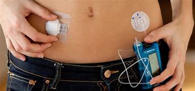 (( صورة لمضخة الانسولين وهي جهاز إلكتروني صغير بحجم جهاز الهاتف المحمول يُستخدم لمرضى السكري بهدف تزويد أجسامهم على مدار اليوم بكمية كافية من الأنسولين التي تكفي احتياجات أجسامهم.))