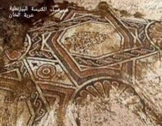 في العام 1986 أجريت تنقيبات أثريّة تم فيها كشف أجزاء من الكنيسة البيزنطيّة ذات مسطبة فسيفسائية جميلة وغنيّة بالزّخارف، يتكوّن قسمها الغربي من دوائر تسمّى إيقونات تتألّف من أغصان الدّوالي وفي داخلها ثمار متنوّعة، والقسم الشرقي مسدّسات هندسيّة تضمّ حيوانات ووجوهًا بشريّة. وقد تعرّضت هذه الأشكال للتّخريب باعتبارها مناقضة لتوصية الدين بمنع الرسم والتماثيل، إذ قامت مجموعة من المتديّنين اليهود المتطرّفين بتشويهها وكتابة شعارين على الجدار، في أحدها كتبوا: ( مقدار التخريب كمقدار التدنيس)