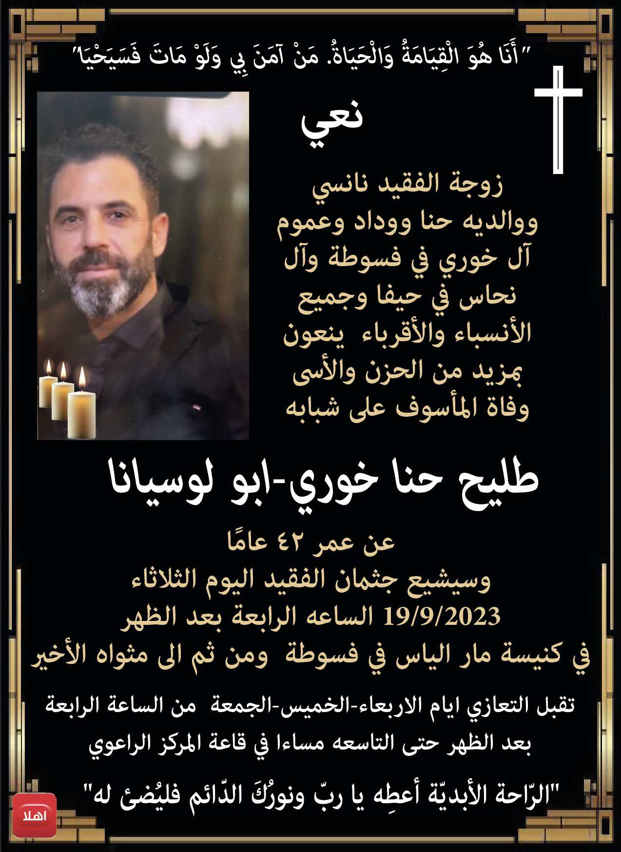 فسوطة: وفاة الشاب طليع حنا خوري عن عمر ٤٢ عام
