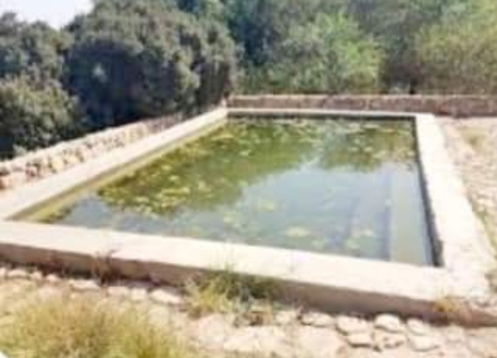 فوق العين توجد بقايا بناء دائري كان برجًا للحمام (كولومباريوم).