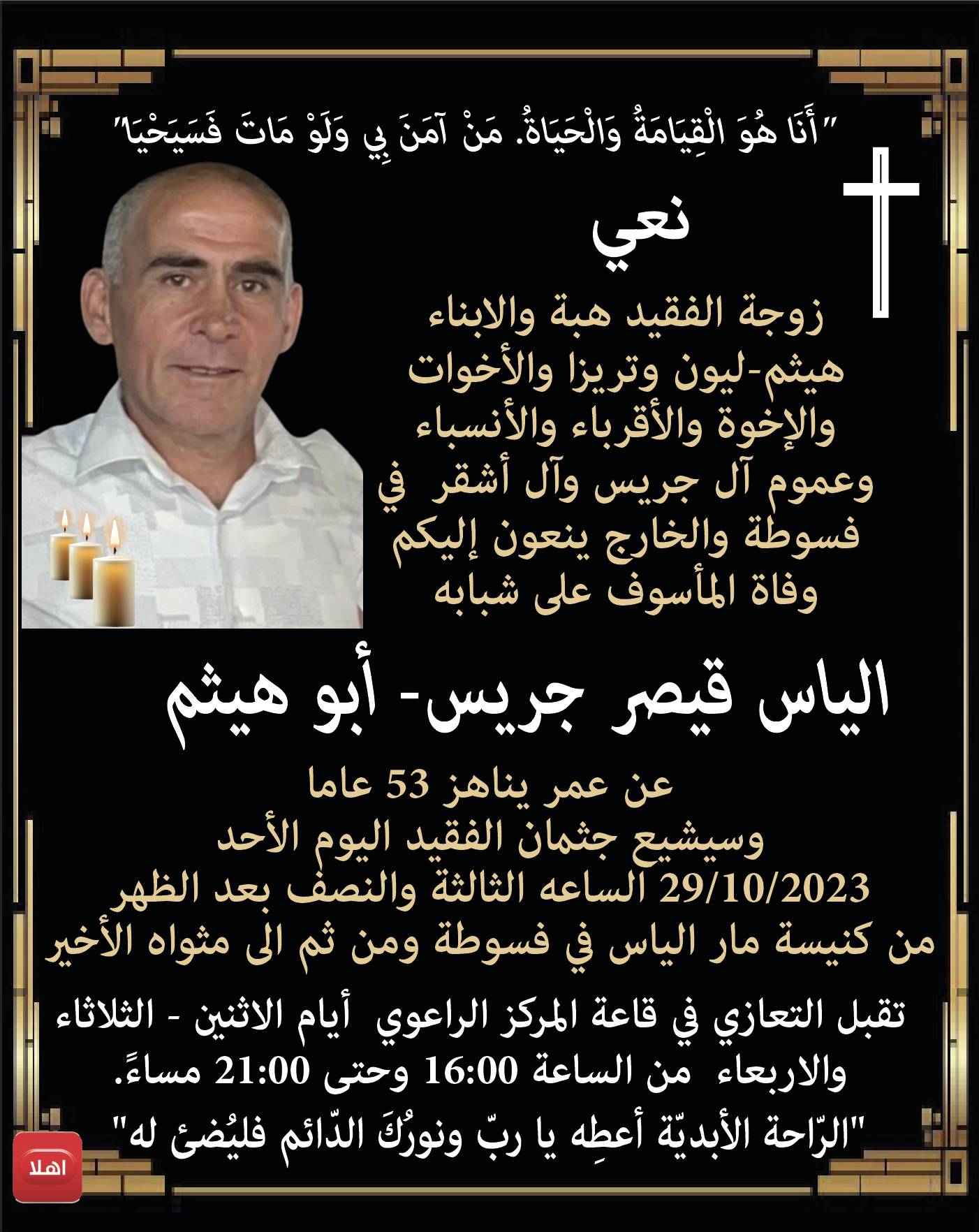 فسوطة:: وفاة المأسوف على شبابه الياس قيصر جريس