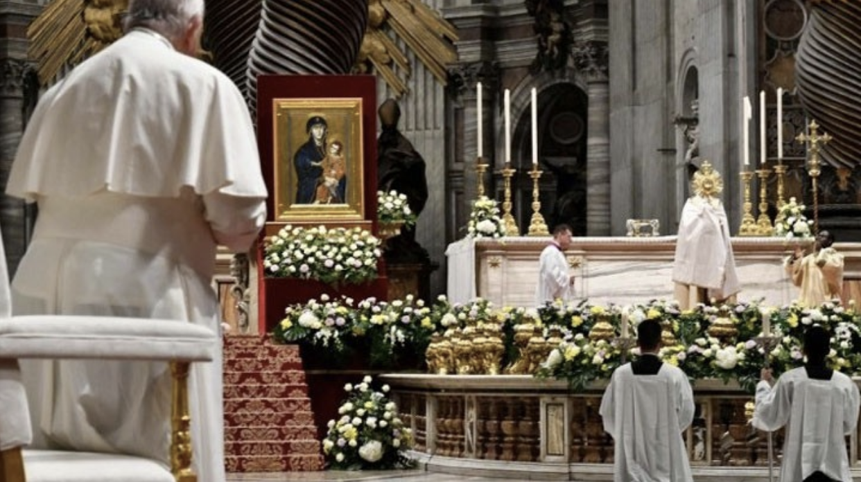 في وقفة الصّلاة من أجل السّلام الّتي ترأّسها مساء الجمعة في بازيليك القدّيس بطرس، والّتي تخلّلها صلاة مسبحة الورديّة وسجود للقربان المقدّسة، كانت للبابا فرنسيس صلاة تضرّع فيها إلى مريم العذراء قائلاً: "يا مريم، أنظري إلينا! نحن هنا أمامك. أنت أمّ، وتعرفين تعبنا وجراحنا. أنت، يا ملكة السّلام، تتألّمين معنا ومن أجلنا، إذ ترين الكثير من أبنائك تمتحنهم الصّراعات، وتحزنهم الحروب الّتي تمزّق العالم".