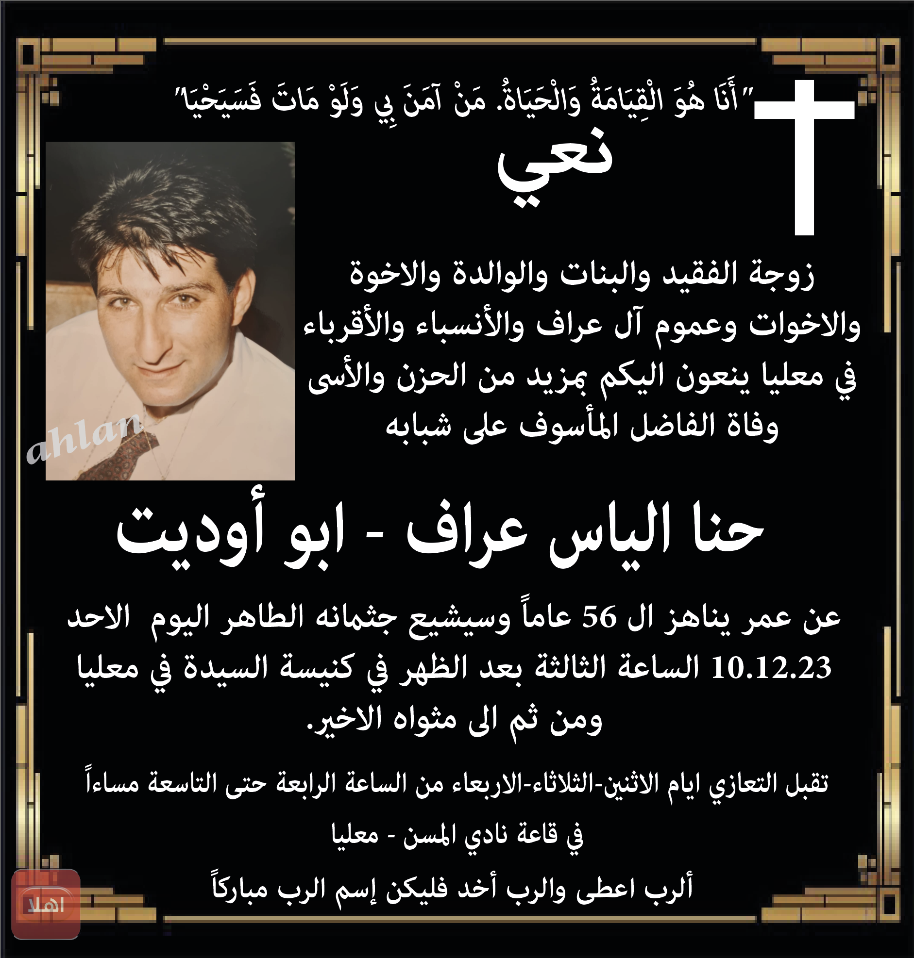 معليا:: فاة الفاضل حنا الياس عراف ابو اوديت
