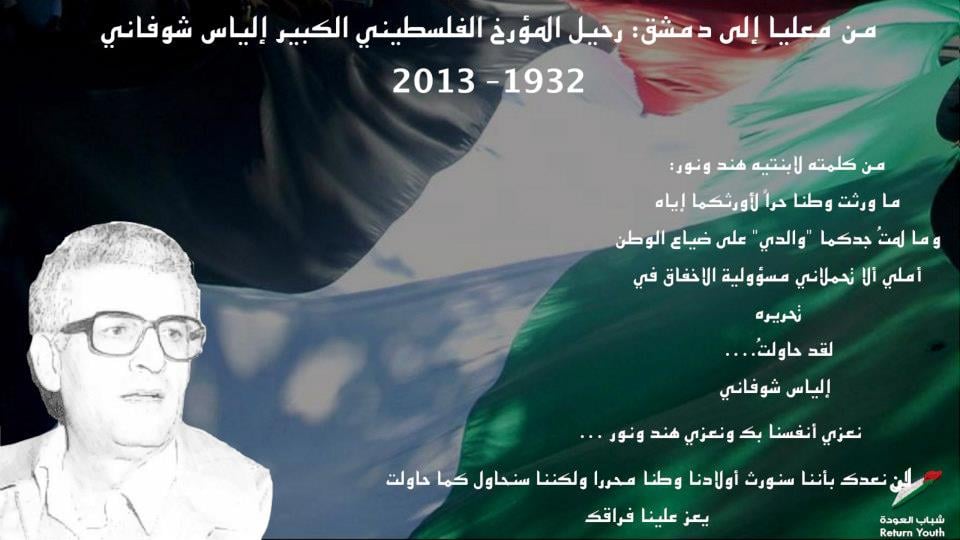 ولد الباحث والمؤرخ والقيادي الفلسطيني، الدكتور الياس شوفاني سنة 1933 في قرية معليا، قضاء عكا، وأنهى دراسته الابتدائية في مدرستها. انتقل في سنة 1945 إلى مدينة عكا حيث درس في "ثانوية عكا للبنين"، لكن حرب سنة 1947-1948 حالت دون إتمامه دراسته الثانوية فيها. طرد إلى لبنان مثل الكثير من الفلسطينيين ثم عاد متسللا إلى قريته وأخذ يدرِّس في مدرستها في السنة الدراسية 1951-1952 ولمدة تسع سنوات، بعد أن أنهى دورة لمدة ستة أشهر لإعداد المعلمين في يافا. التحق بالجامعة العبرية في سنة 1959 لدراسة تاريخ الشرق الأوسط واللغة العربية وفي سنة 1962 غادر إلى الولايات المتحدة حيث حصل على شهادة الدكتوراه من جامعة پرينستون وكانت الأطروحة التي أعدها عن حروب الردة في الإسلام . عمل الكثير من أجل تنظيم الطلاب والمدرسين العرب في الجامعات الأمريكية لكسب الأنصار للقضية الفلسطينية (كان من بينهم الأستاذ الجامعي هشام شرابي). انضم إلى حركة فتح عام 1967 وغادر أمريكا إلى لبنان سنة 1973 مضحياً بعمله الجامعي، حيث كان له نشاط زاخر في العمل السياسي والميداني وإدارة قسم الأبحاث في معهد الدراسات الفلسطينية. عارض الانسحاب من بيروت إثر الغزو الإسرائيلي للبنان في صيف سنة 1982 وانشق عن حركة فتح عام 1983 بسبب الانحرافات السياسية التي مارستها القيادة آنذاك وأساليب اتخاذ القرارات في الحركة. اعتزل العمل السياسي سنة 1991 وتفرغ للكتابة وقد نشر العديد من المؤلفات والدراسات منها: