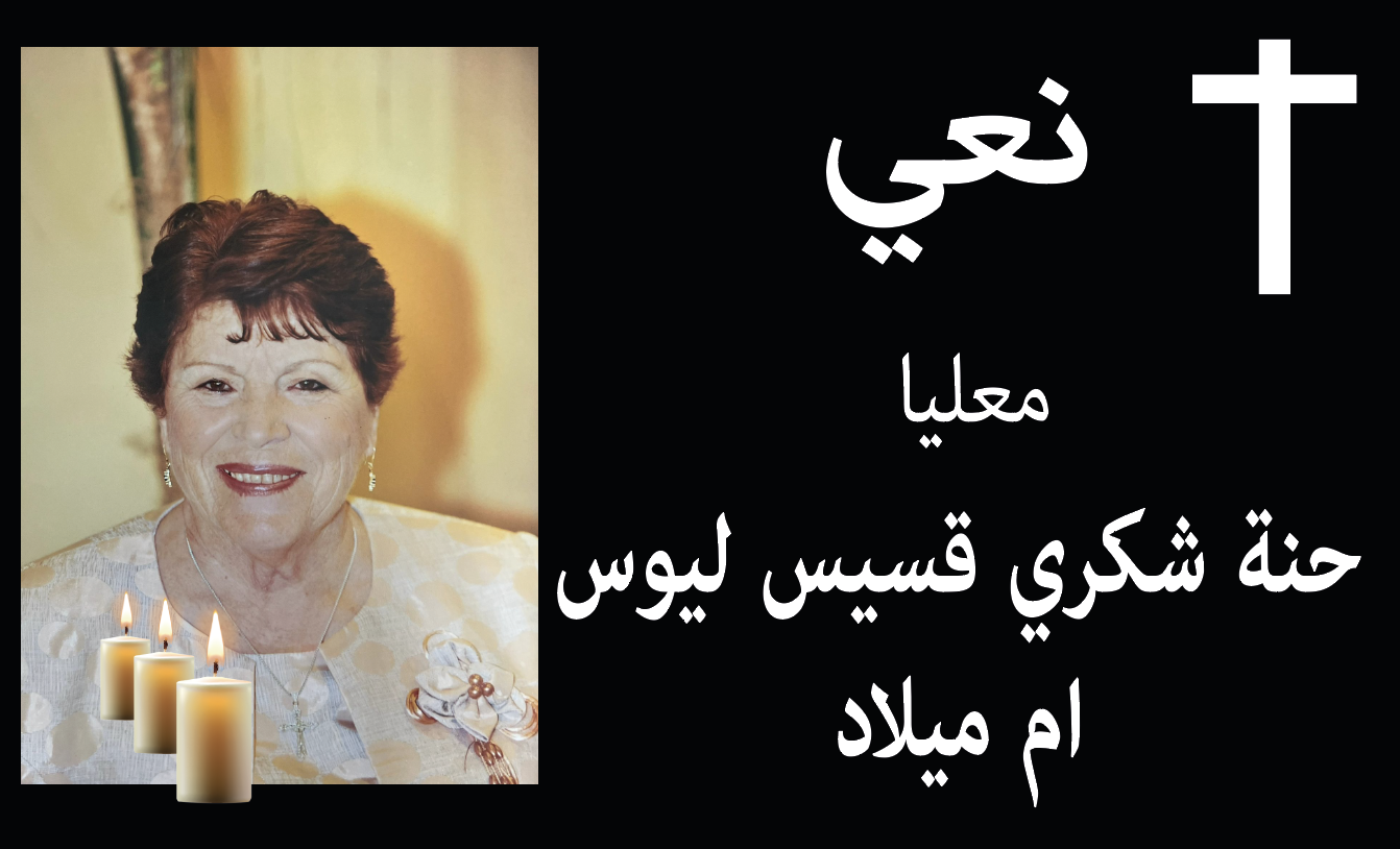 معليا: وفاة الفاضلة حنه شكري قسيس ليوس ام ميلاد