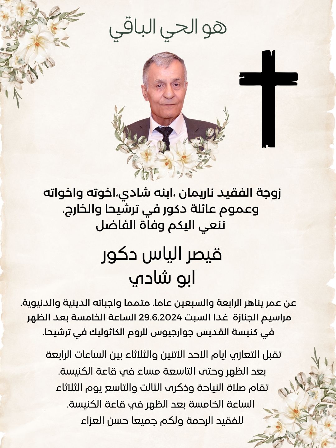 ترشيحا:: وفاة الفاضل قيصر الياس دكور-ابو شادي