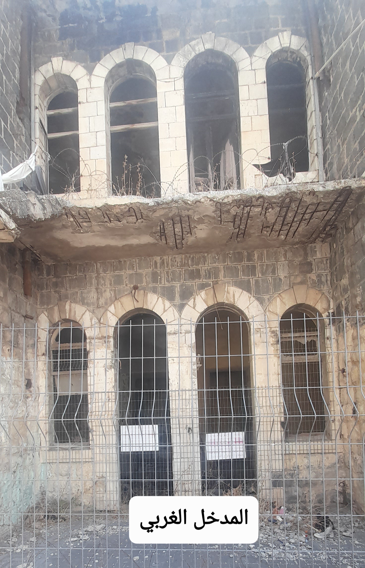 على طرفي البناء من الشمال ومن الجنوب شرفتان من الحجر الجيري القدسي الزّهري الجميل.