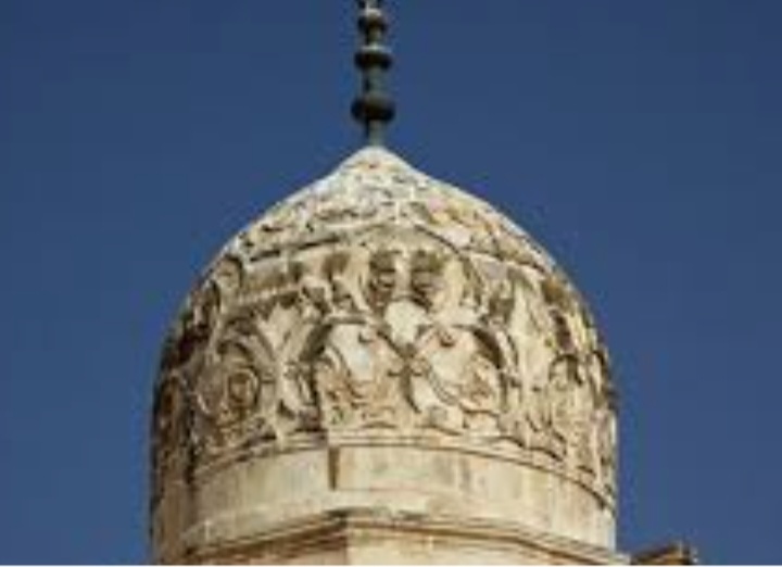 والطّبقة العليا قبّة جميلة رائعة الشّكل، تزيّنها زخارف نباتيّة .