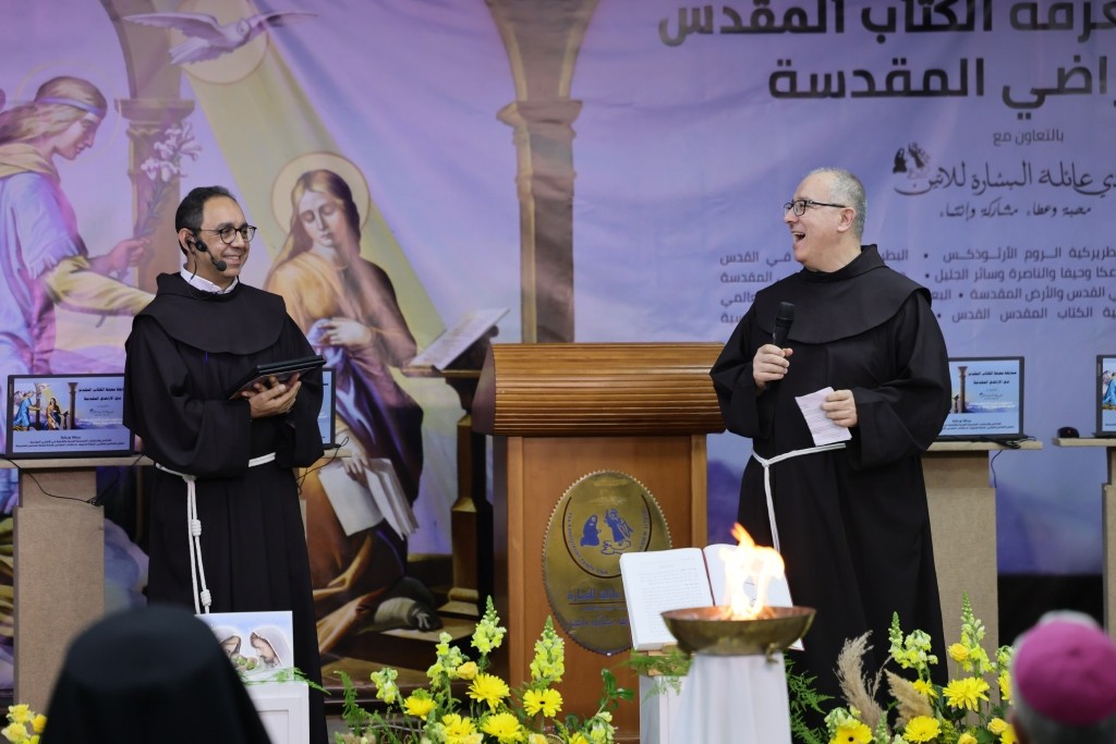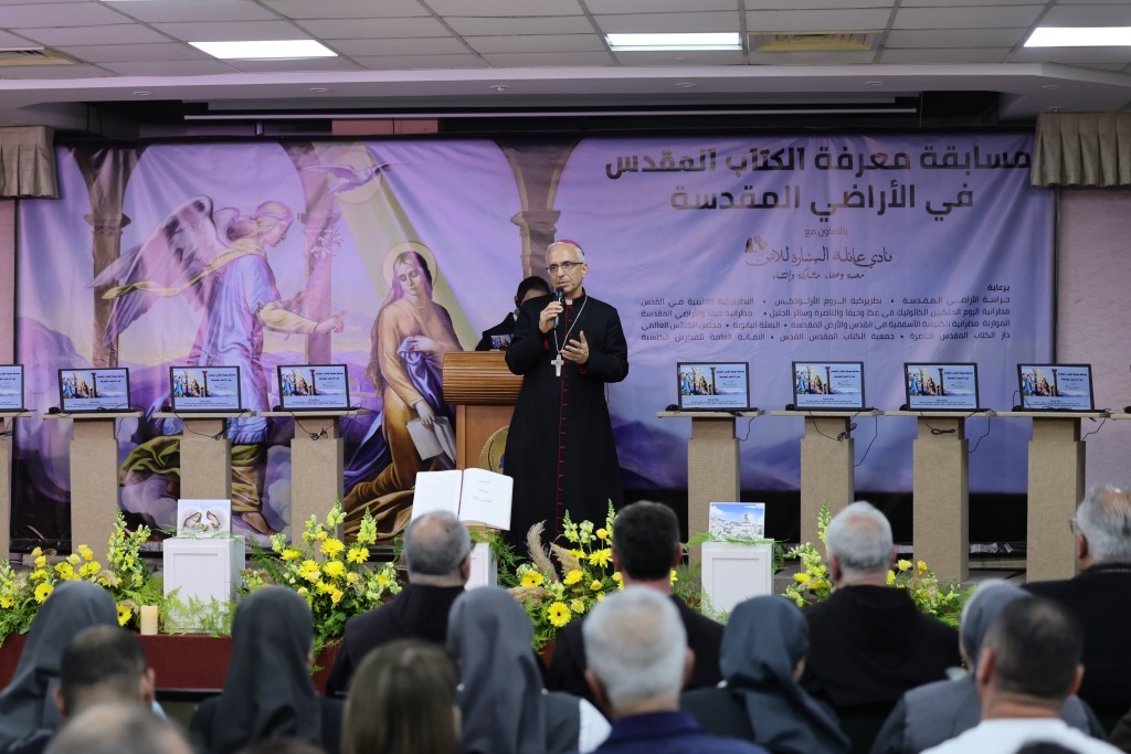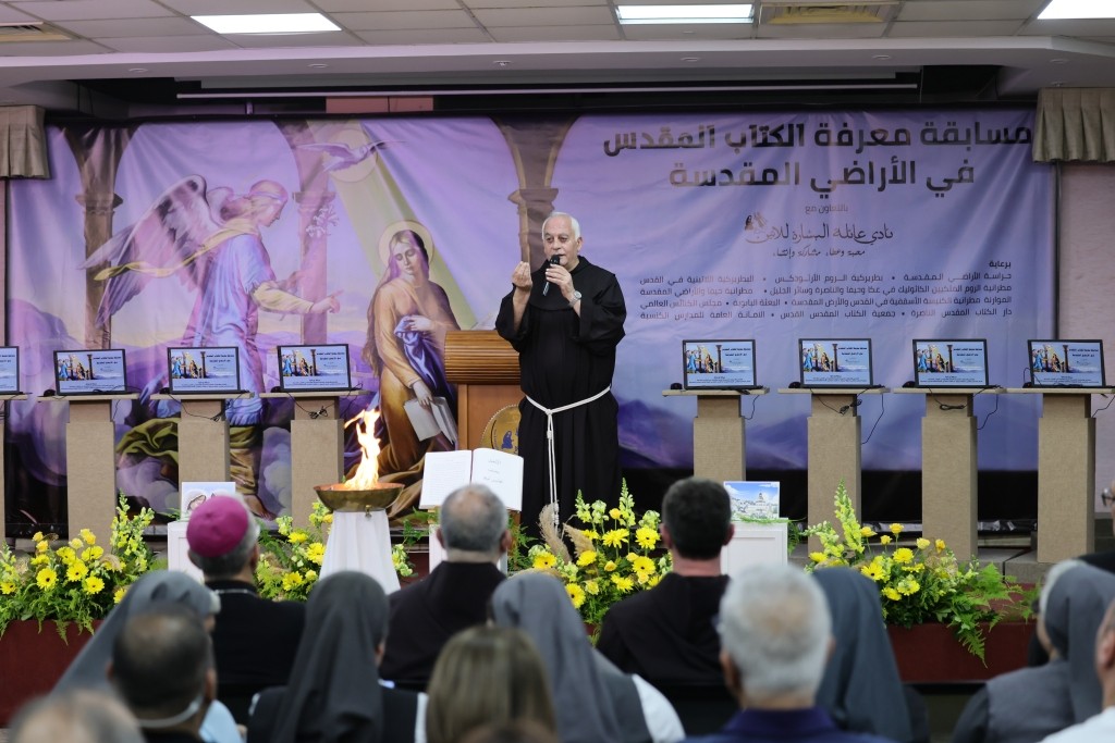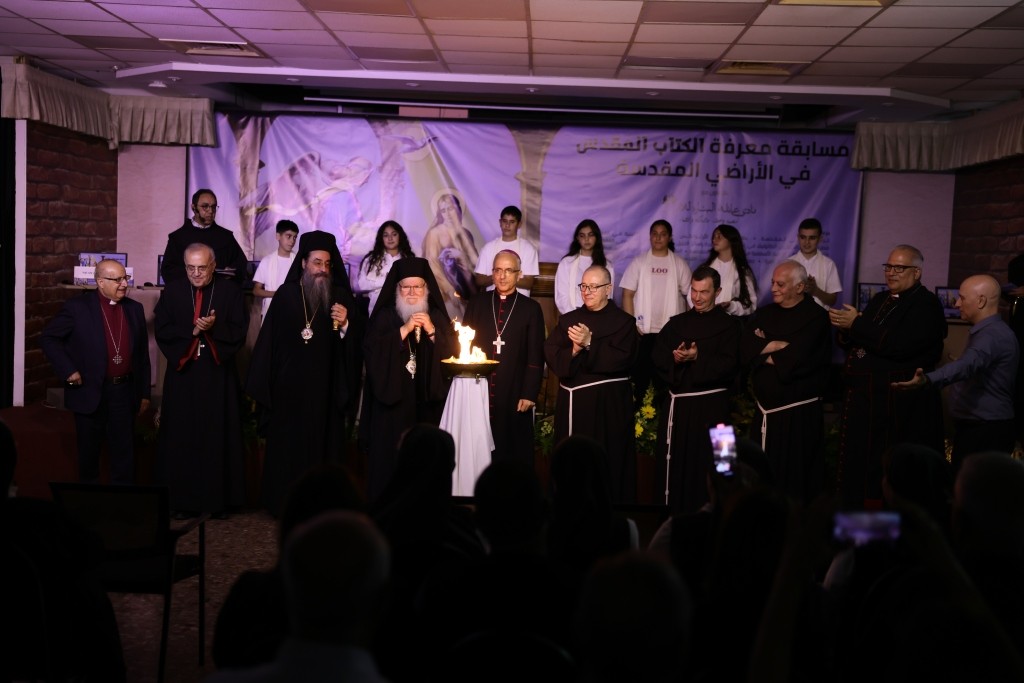 اهلا-تصوير استوديو نبيل حكيم  الاحتفال بافتتاح المسابقة الثامنة لمعرفة الكتاب المقدس في الأراضي المقدسة وكان التسجيل للمسابقة قد انتهى في 10.10.2025 حيث بلغ عدد المشاركين 345 مشارك من كافة الابرشيات المسيحية الغربية والشرقية من اكثر من 30 بلدة من انحاء الأراضي المقدسة وتشمل القدس، بيت لحم وبيت جالا، مقسمين الى خمسة فئات عمرية من جيل 10 سنوات فما فوق، سيتنافسون فيما بينهم على مدى ثلاثة مراحل ليصلوا الى المرحلة النهائية من المسابقة حيث سيحظى الفائز من كل فئة عمرية برحلة حج الى حاضرة الفاتيكان ولقاء قداسة البابا. الاب أمجد صباره، كاهن رعية اللاتين في الناصرة، رحب بالحضور واكد على أهمية المسابقة في تعميق الفكر الديني الايجابي النابع من محبة الآخرين وتنمية الشعور بالانتماء لدى شبيبة الأراضي المقدسة. وقدم حارس الأراضي المقدسة وأصحاب السيادة كلمات التهنئة للمتسابقين والاهل واثنوا على هذا العمل الكبير وعلى الجهود التي بذلت ليلا ونهارا من اجل اخراج هذا العمل الى حيز التنفيذ، حيث استطاعت المسابقة ان تجمع كل الرعايا المسيحية تحت سقف واحد. وقد تخللت الامسية مسابقة تصفية للمجموعة الاولى من المتسابقين من الفئة العمرية الثانية على أثرها اعلنت هيئة التحكيم المكونة من الاب نائل أبو رحمون والأب انطونيوس حبيب عن انتقال مجموعة منهم الى المرحلة الثانية، اما اللذين انهوا المسابقة فتسلموا شهادات تقدير.