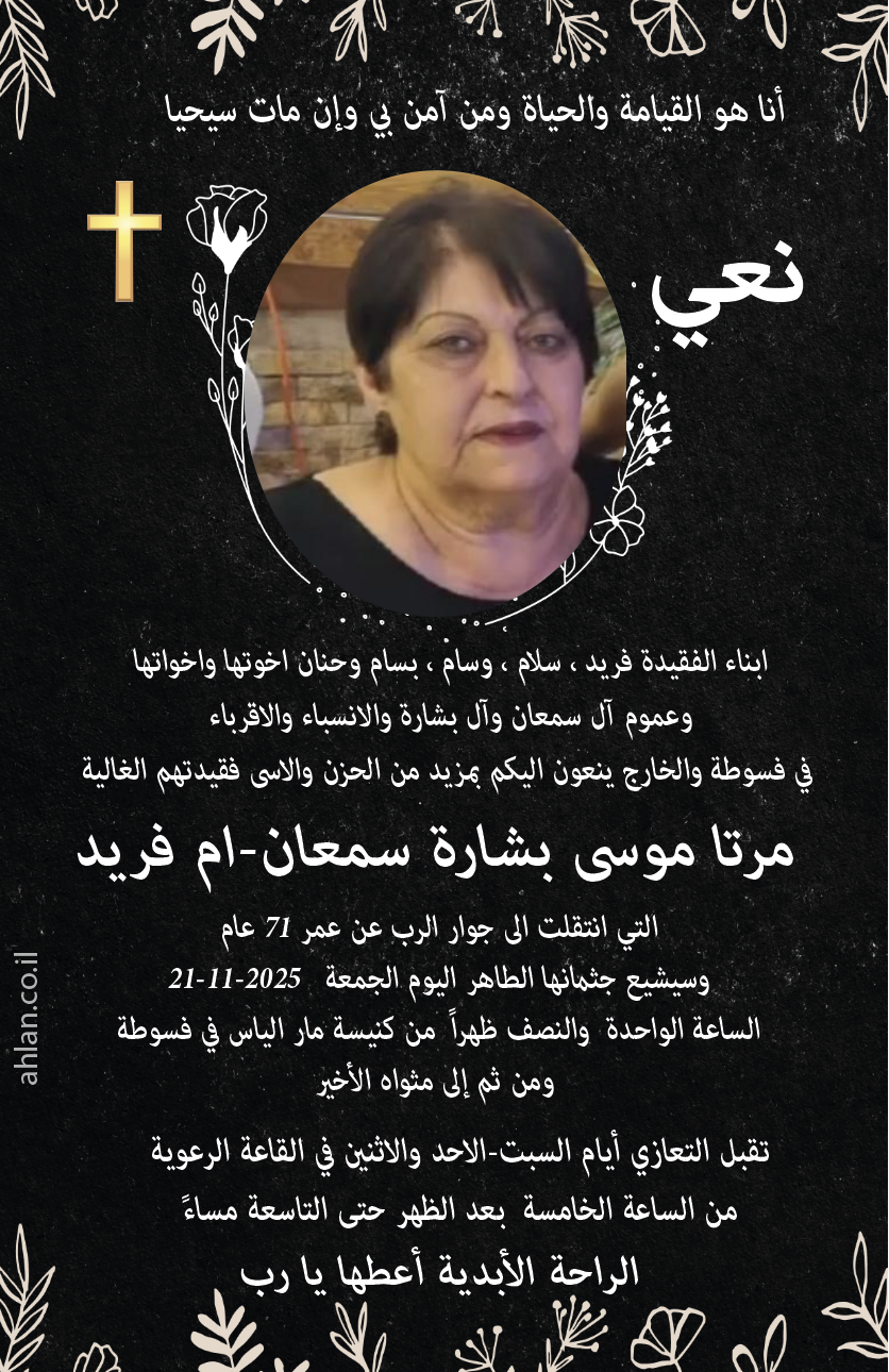فسوطة : وفاة الفاضلة مرتا اشقر ام فريد