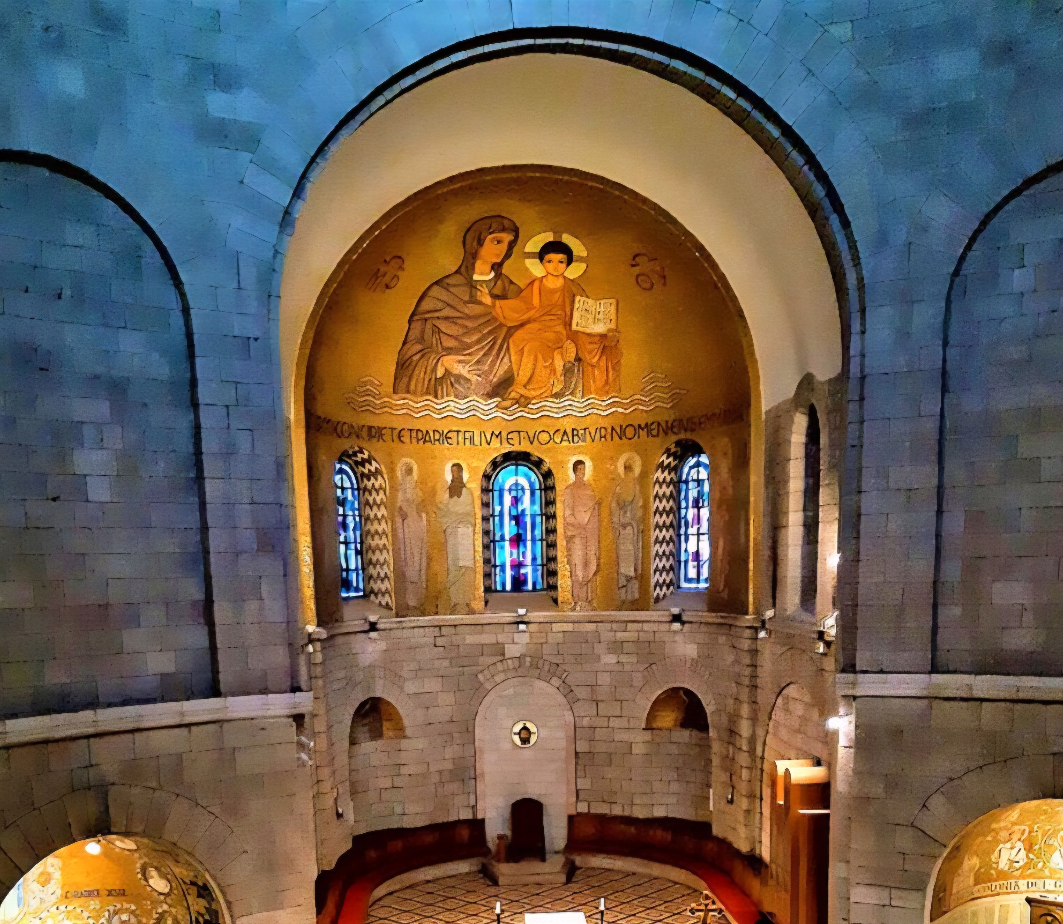 اهلا-فوزي حنا كنيسة رقاد (نياحة) العذراء ................................. هنالك إيمان بأن العذراء مريم رقدت ولم تمُت، وصعدت إلى السّماء روحًا وجسدًا، ويتم إحياء هذه الذّكرى في 15 آب من كلّ عام. تقع الكنيسة المنسوبة إلى مكان رقادها على قمّة جبل صهيون قرب غرفة العشاء الأخير ، وقد بنيت على انقاض كنيسة بيزنطيّة مندثرة، ويعود تاريخ الكنيسة الحاليّة إلى زيارة ڤلهلم الثاني إمبراطور ألمانيا آلى القدس سنة 1898، واشترى في هذا الموقع ما مساحته 2137 مترًا مربّعًا مِن صاحبها الشيخ سعيد الدّاودي، بمبلغ يساوي 3000 ليرة ذهب فرنسيّة، ويقول مصطفى الدّبّاغ إن السّلطان عبد الحميد وهب الأرض للضّيف�