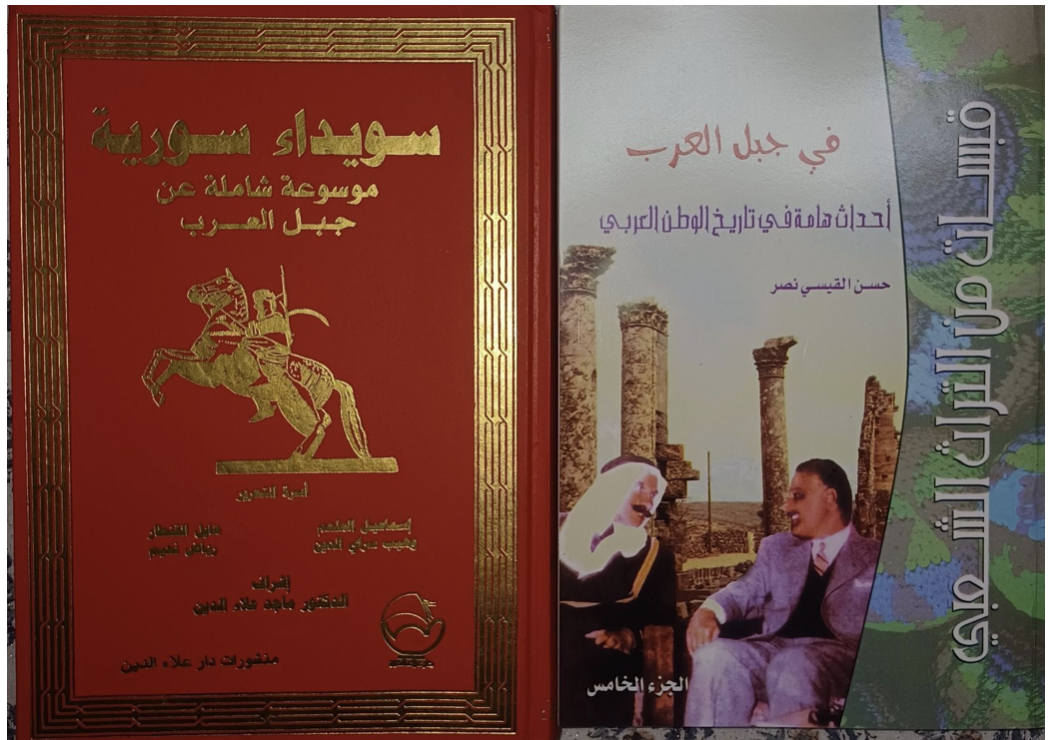الموسوعة الأولى: في جبل العرب/ أحداث هامّة في تاريخ الوطن العربي/ قبسات من التّراث الشّعبي، سِتّة أجزاء، وضعها الكاتب: حسن القيسي نصر (كاتب ومفكّر وناقد تونسيّ من مواليد عام 1937، كتب الرّواية، القصّة القصيرة، المسرحيّة والنّقد الأدبي، من رواياته: الآخرون والمدينة التي تسكنني).