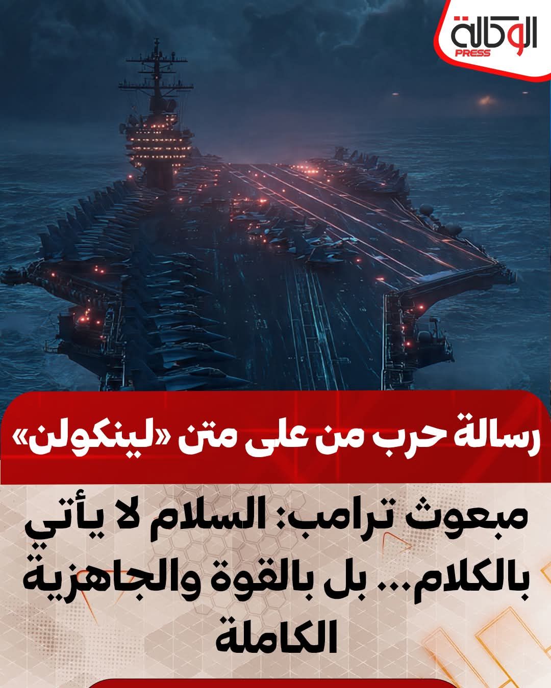 في تصعيد لافت، أطلق المبعوث الخاص للولايات المتحدة إلى الشرق الأوسط ستيف ويتكوف تصريحات مباشرة من على متن حاملة الطائرات الأميركية أبراهام لينكولن، أكد فيها أن واشنطن «تؤمن بالسلام من خلال القوة»، في رسالة حملت نبرة ردع صريحة.