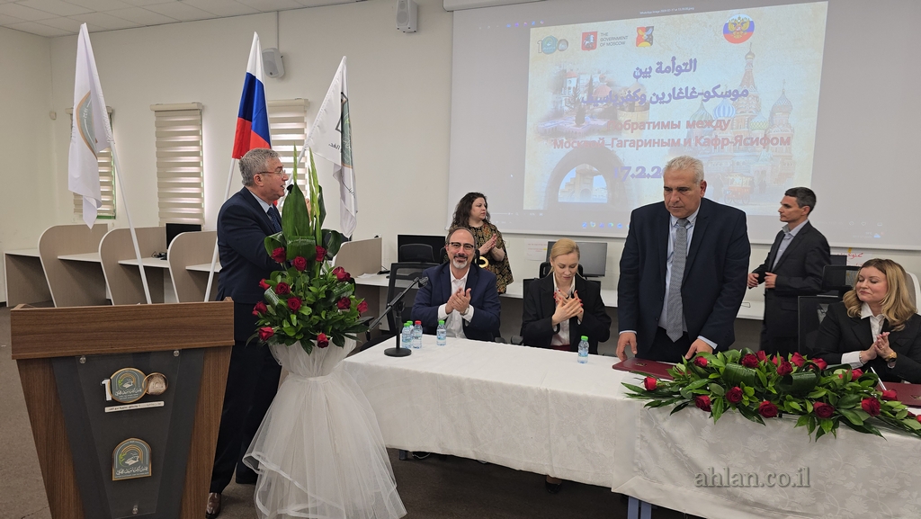 اهلا كفرياسيف: منذ فترة ليست ببعيدة وضع المجلس المحلي رؤيا مستقبلية شملت العديد من المرافق والبرامج والنشاطات وبمشاركة واسعة من ابناء البلدة في كفرياسيف وبحضور مشرف من رجال الدين المحترمين وشخصيات عدة وسط استقبال دافيء بمجموعة مندوبين من دولة روسيا وبالتحديد من مقاطعة غاغارين-موسكو وبالتسيق مع الدكتور امين صفية القنصل الفخري لدولة روسيا في البلاد تم وبحمدالله الوصول بالاتفاقية الى خط الامضاءات والتوقيع المشرف على معاهدة التوأمة مع قرية كفرياسيف بجميع اقطابها ومؤسساتها المدنية والدينية ممثلة بالرئيس السيد عصام شحادة. افتتحت اللقاء بمرافقة الترجمة للغة الروسية والعربية الاخت بادرة بولس بكلمات لمست القلوب معبرة عن هذا اللقاء بالتاريخي المميز الذي عملت عليه عدة جهات وصولا الى هذا اللقاء التاريخي ومن ثم تتابعت الكلمات من سيادة المطران ببركته كيريوس كيريوس الكلي الوقار ومن ثم السيد عصام شحادة رئيس المجلس المحلي وكلمة السيد شادي شويري الرئيس السابق وكلمة الدكتور امين صفية القنصل الفخري لدولة روسيا في البلاد وكلمة مندوبات دولة روسيا هنا لا بد من التنويه ان الوزير الروسي تعذر عليه الوصول والمشاركة لا بد من كلمة شكر للراقصات مع مديرتهم رابعة مرقص على فقرة رقص الباليه الخاص والمميز. ومسك الختام كانت فقرة التوقيع على المعاهدة من قبل الطرفين الروسي وبلدة كفرياسيف وسط حضور كبير وتصفيق حار كما جاء على لسان رئيس المجلس شحادة ان هذا اليوم هو تاريخ مفصلي في قرية كفرياسيف بجميع اطيافها عائلة واحدة متماسكة تبعث روح المحبة والايمان والتعاون بين الابناء مع كلمات الشكر لدولة روسيا وخاصةالى جميع الذين عملوا من اجل الوصول الى هذا اللقاء التاريخي مع كلمة الشكر التي امتزجت بالتهاني والفرح الذي كان له الدور الكبير في التنسيق لهذا البرنامج التاريخي وسط الاحتفالات المئوية لتاسيس المجلس المحلي في قرية كفرياسيف.