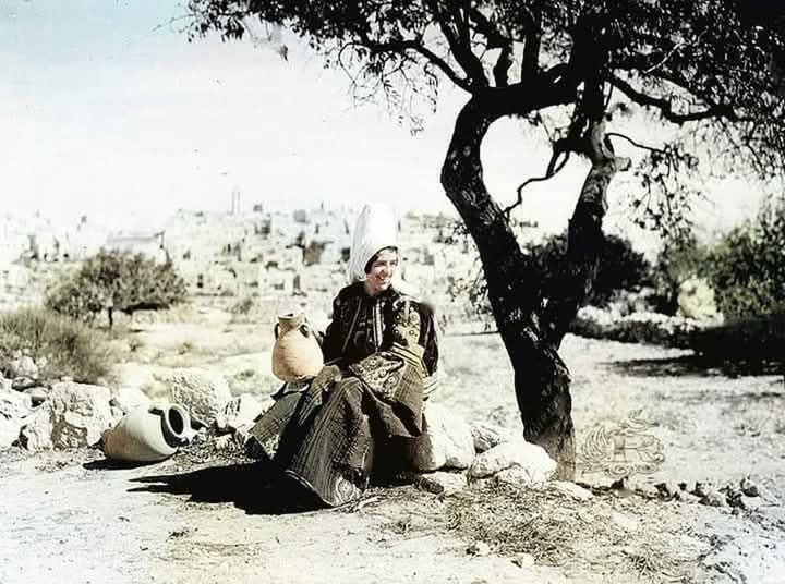 الصورة : فتاة من ثلاثينيات القرن الماضي تلبس الزي الفلسطيني الخاص بمدينة بيت لحم