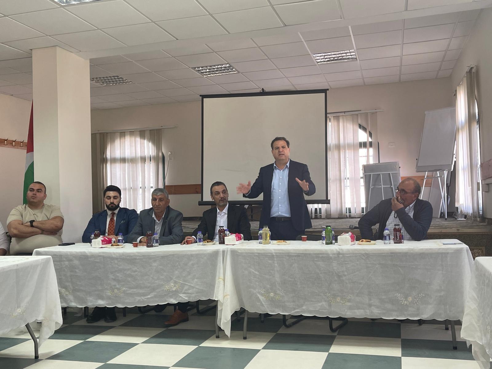وخلال اللقاء، قدّم عضو الكنيست أيمن عودة محاضرة تناولت موضوع السلم الأهلي، مسلطًا الضوء على دور لجان الصلح في تعزيز التماسك المجتمعي، وأهمية التكافل الوظيفي في دعم الاستقرار الاجتماعي.كما وطالب عمار ابو بكر رئيس الغرفة التجارية من النائب أيمن عودة والوفد العمل على فتح معبر الجلمة..jpeg)