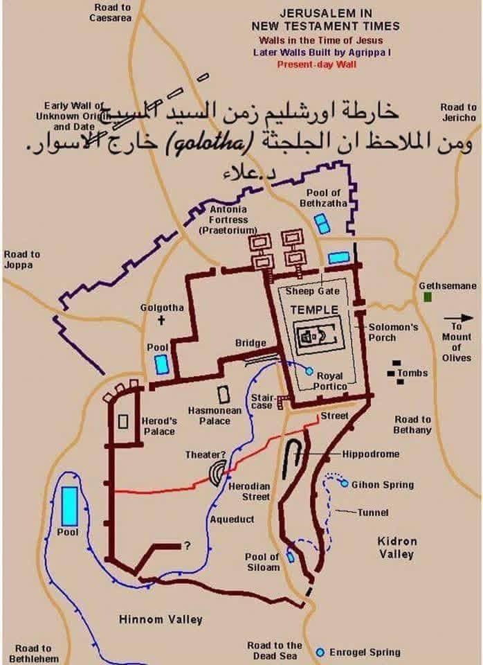 وبالحقيقة فإن المسيح دُفِن خارج أسوار أورشليم رغم أننا نرى قبره اليوم داخل أسوارها، ذلك لأن الأسوار في أيامنا هذه ليست هي في أيام المسيح له المجد!